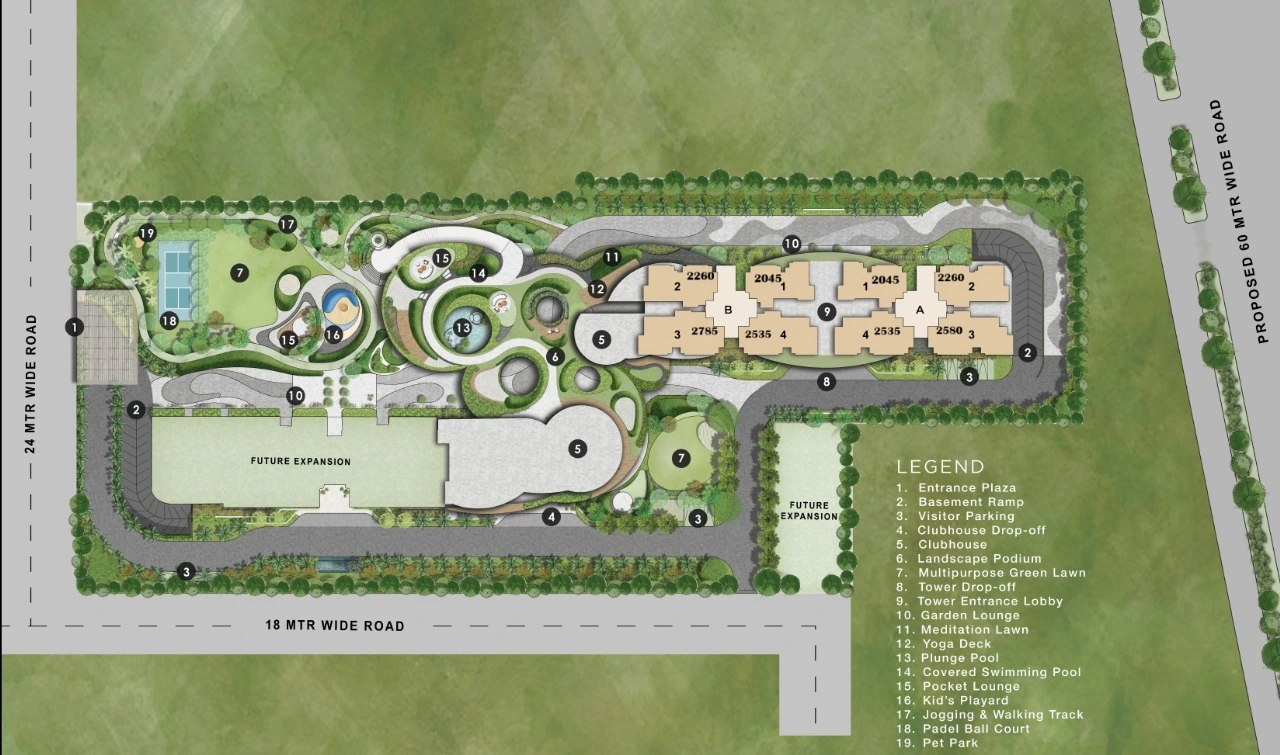 Planned across approximately 5.6 acres, the project features four elegant high-rise towers offering thoughtfully designed 3BHK residences. The layout prioritises openness and balance, ensuring homes feel airy, well-lit, and connected to their surroundings.